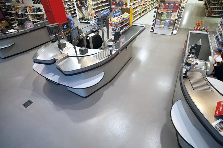 Ganz gleich, ob vor oder hinter den „Kulissen“ eines Supermarkts – Bodenbeschichtungen von Silikal, Mainhausen, sorgen in jedem Fall für einladend schöne und auf Dauer hoch belastbare Grundlagen. In Verkaufs- und Kassenbereichen ebenso wie in Verarbeitungs- und Vorratsräumen, im Bereich von Fleisch, Fisch- und Käsetheken bewähren sich die schnell verlegten Reaktionsharz-Systeme von Silikal, natürlich mit HACCP- (Risiko-Analyse Kritischer Kontroll-Punkte in Bezug auf Lebensmittel) Standard und AgBB (Ausschuss zur Gesundheitlichen Bewertung von Bauprodukten) Prüfung, deshalb seit Jahrzehnten..